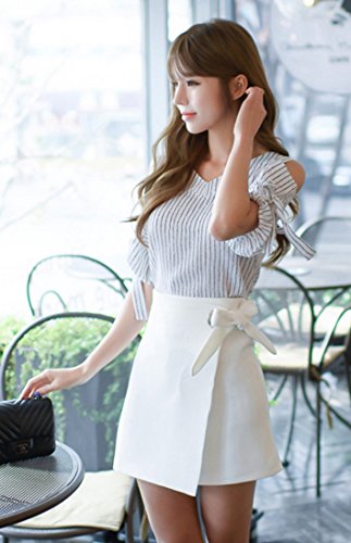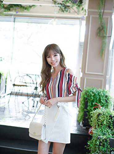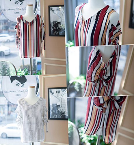-. Feature : フェミニンな着こなしには欠かせないシフォン素材が涼しげなトップスが入荷しました。カラーは落ち着きのあるレッド系の太ストライプと、ホワイトと細ブラックストライプの2色展開。目を惹くデザインの一枚です。 / 絶妙なカッティングのオープンショルダーでセクシーな肩見せスタイルに。デコルテラインを美しく魅せてくれるVネックとクールなストライプデザインの組み合わせですらっとスリムな印象を与えてくれますよ。 / 注目はやっぱり好みのシルエットに調節できるデザインスリーブ。クシュッとさせた袖はリボンで結んでこなれ感を演出してくれます。可愛らしさとセクシーさがバランス良く、様々なコーデに取り入れることができます。 / フレアスカートやワイドパンツを合わせてキレイめカジュアル系に、またタイトスカートやテーパードパンツで知的エレガント系にも。幅広く着回せるのでオススメです。インコーデでスタイル良く着こなすのがGOOD! / ※安心・安全・便利なAmazonプライム(P.R.Ime)のFBA倉庫発送で、24時間対応・お待たせしない 即日発送・送料無料にてお届けいたします。