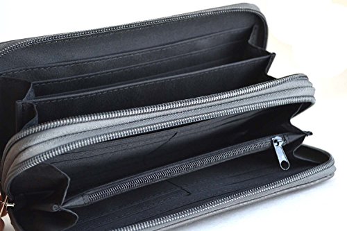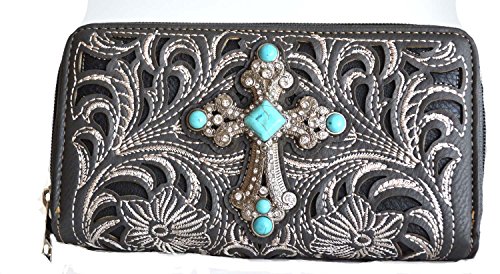 Title : Gray turquoise stone rhinestone cross embroidery zipper clutch wallet