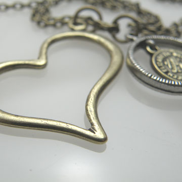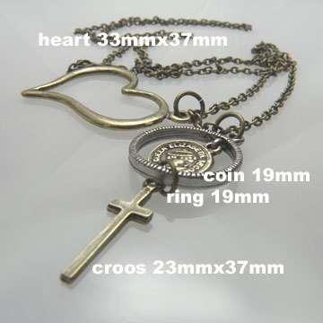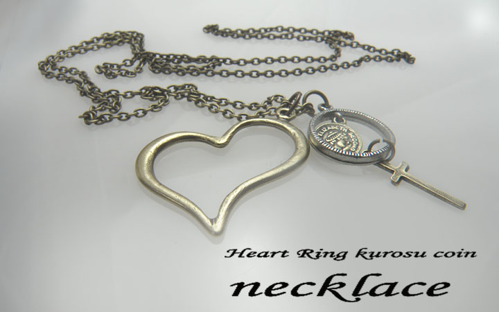 ■サイズ  ▼ハート 33mm×37mm  ▼クロス 23mm×7mm  ▼リング 19mm  ▼コイン 11mm  【長さ】▼チェーン 78cm