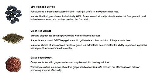 Includes hair loss vitamins and supplements such as: saw palmetto, proanthocyanidins, beta sitosterol, and more