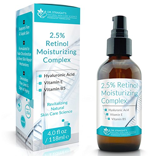 -. Binding : Misc. -. Brand : Dr. Straight -. EAN : 0636790989425 -. Feature : Features High Potency 2.5% Retinol - Formulated to Fade Discoloration & Boost Skin Repair Mechanisms - Supports Firm & Supple Skin - Diminishes Fine Lines & Signs of Aging / A powerful blend of antioxidants combined with Vitamin A. Vitamin A has a long list of clinically proven restorative, anti-aging, and youth improving properties. / Our blend is powerful and effective - The active ingredient burrows down into the deep skin and helps activate collagen and elastin which help make the skin look more young looking - Formulated to fight free radical damage as well as restore and renew firmness, elasticity, and thickness to the skin / Best if used along with our 2.5% Retinol Serum / Made In The USA - Pharmacist Formulated - Made with Natural Ingredients - We produce the most high quality professional facial products available. -. IsAdultProduct : 0 -. Label : Dr. Straight's Natural Skin Care -. Manufacturer : Dr. Straight's Natural Skin Care -. ProductGroup : Beauty -. ProductTypeName : BEAUTY -. Publisher : Dr. Straight's Natural Skin Care -. Studio : Dr. Straight's Natural Skin Care -. Title : Dr. Straight's 2.5% Retinol Moisturizing Complex - Supports Firm & Supple Skin - Diminishes Fine Lines & Wrinkle - Boost Skin Repair - Fights Premature Aging- Pharmacist Formulated -. UPC : 636790989425