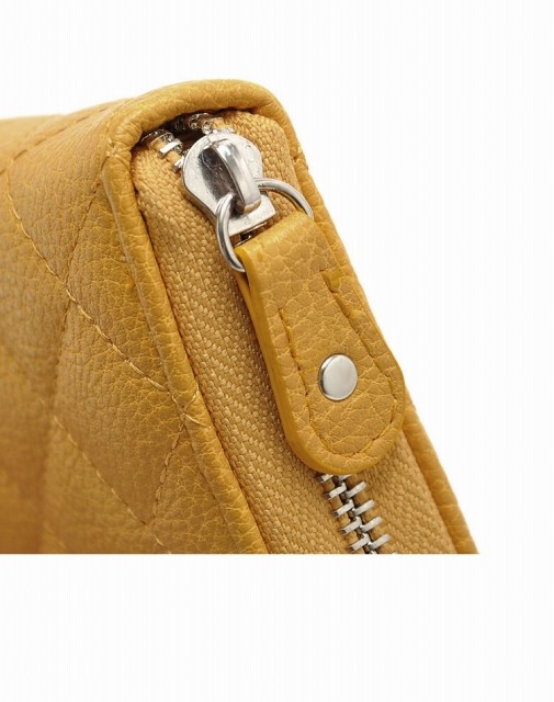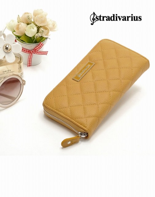 レディース ストラディバリウス Stradivarius 財布 長財布 イエロー キルティング ラウンドファスナー