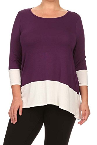 -. Title : Women's Plus Size Solid Color Block 3/4 Sleeve Tunic Top MADE IN USA