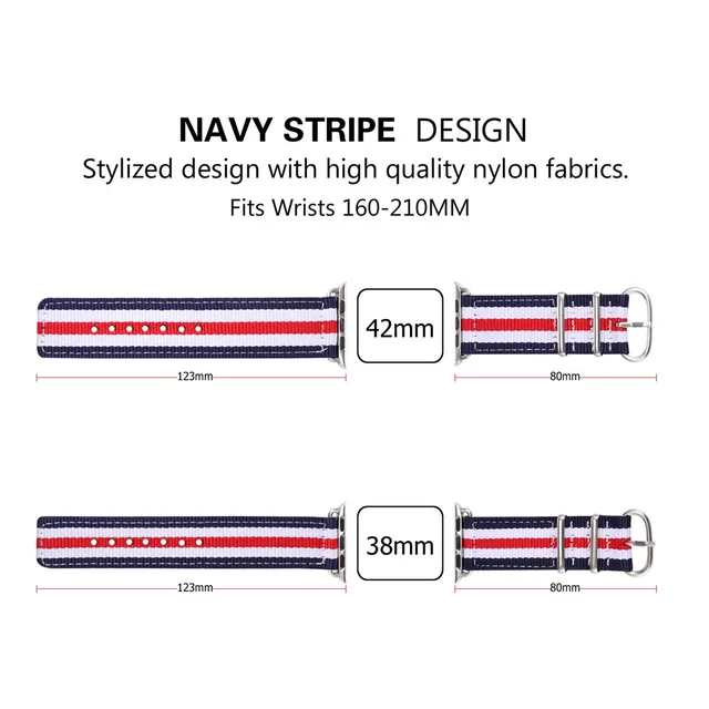 | [해외] 네이비 스트립 디자인 패브릭 스트랩 손목 Applewatch 시리즈 1/2 38 미리메터/42 미리메터 남성/여성 2017 새로운 시계 밴드 APB2546 |