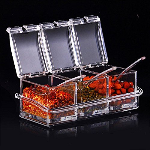 - Multifunctional:Seasoning Container,Spice jar,Spic£¬Container,Condiment pot,Condiment cup,Organizer condiment cups with lids,condiment candy. spice rack organizer,spice organizer. spoons came with the jars . It can contain all kinds of condiments,Such as salt, pepper, sugar, aginomoto etc. Fashionable appearance designed, make your kitchen more beautiful.