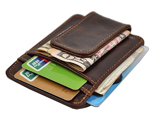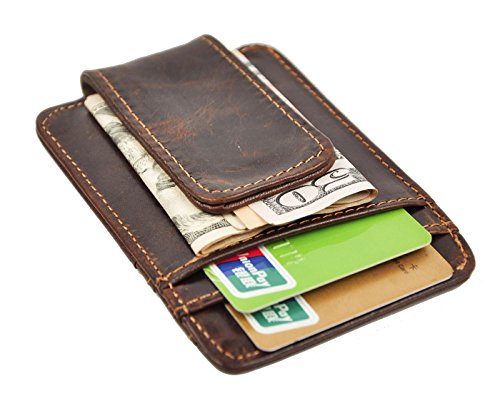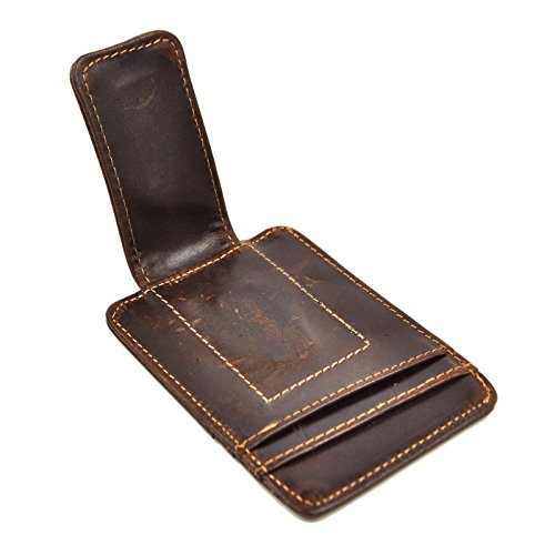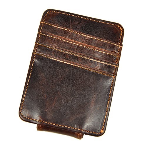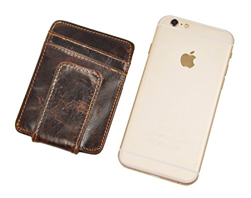 Le'aokuu Mens Genuine Leather Cowhide Magnet Money Clip Credit Case Case Holder Slim Wallet (The Coffee)