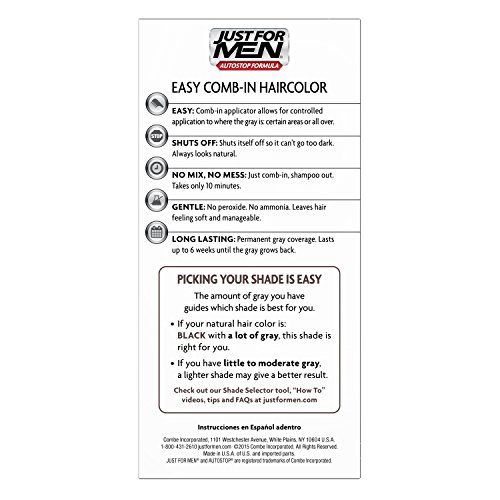 For guys who want an easy way to get rid of gray for natural looking results, there's Just For Men AutoStop. Just For Men comes in many natural looking shades, so it's easy to find the one that truly matches your natural hair color. Can't decide between two shades? Try the lighter one first. You can always go darker later. Made in the USA.Feature