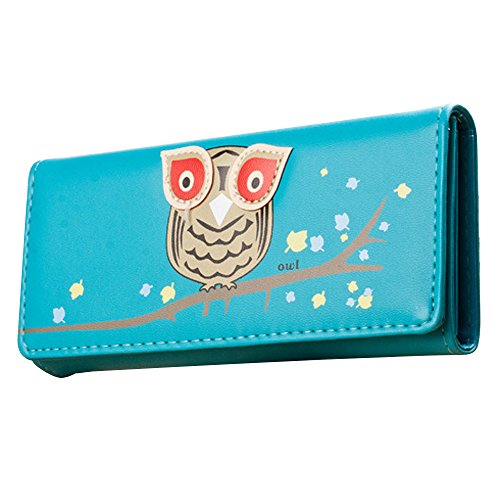 Your Gallery Cute New Owl on Branch Print Fuax Leather Wallet Clutch Purse, blue