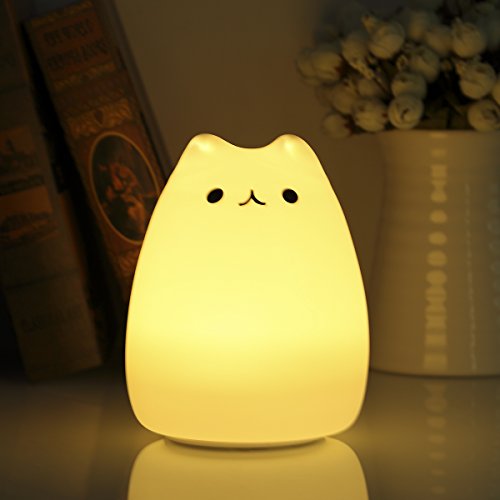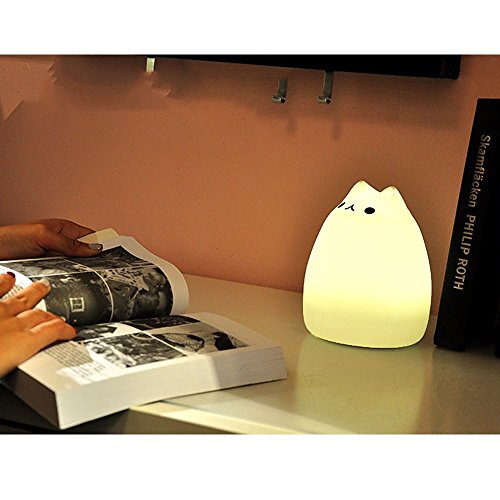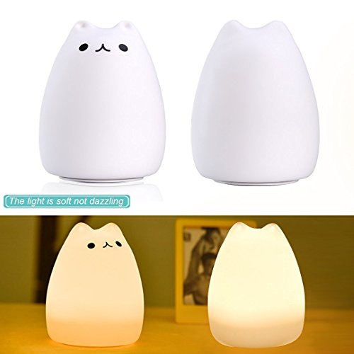 S&G night light Cute Smile Cat Silicon LED Desk Lamp with 7 Changing Color for Baby Bedroom Office- Warm White