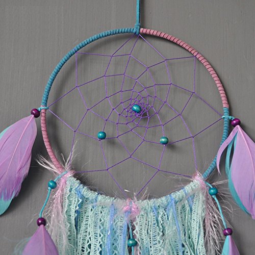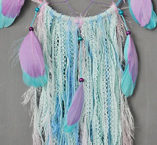Dream catcher handmade traditional white feather wind chime wall hanging home decoration (Purple Bohemia Dream Catcher)