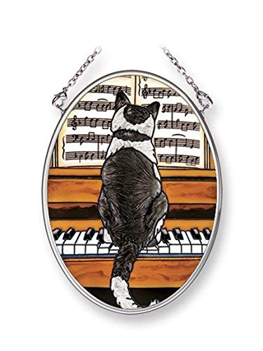 Amia 42091 3-1/4 by 4-1/4-Inch Hand Painted Glass Oval Suncatcher, Small, Cat on Piano Design