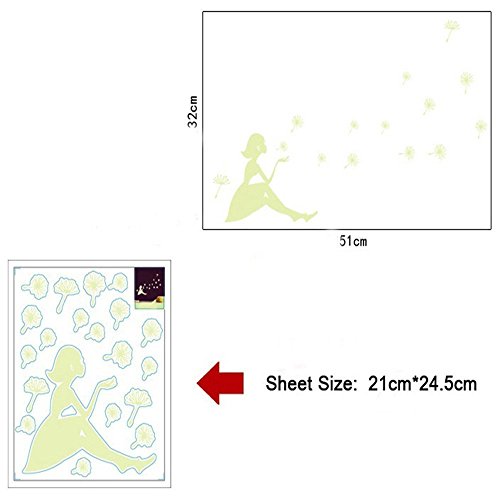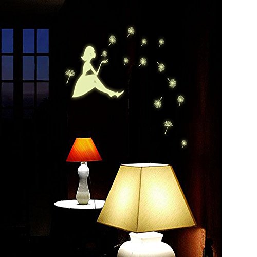 ufengke Girl Blowing Dandelion Wall Decals Fluorescence Stickers Glow In The Dark, Living Room Bedroom Removable Wall Stickers Murals