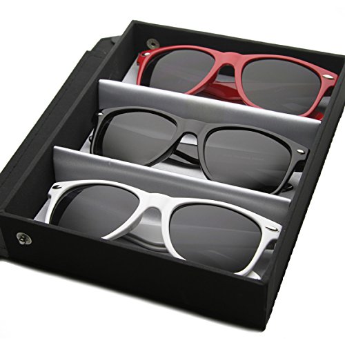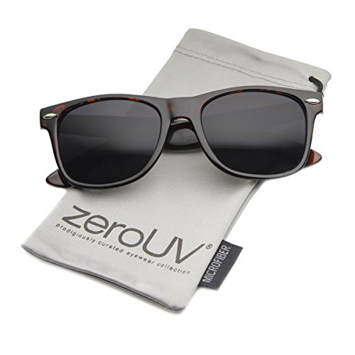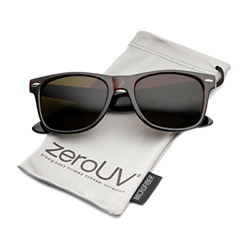 Retro Wayfarers have come a long way since their introduction. The unique frame design has become an iconic fixture of pop culture fashion. Endlessly modified and updated the Wayfarer style will never fall out of favor. Durably crafted and exceptional in quality, its no wonder why this is our most popular styles. Lens offers 100% UV400 protection and are full polycarbonate construction to prevent scratching or cracking. Lens Height:44mm Lens Width:54mm Bridge:16mm Frame Total:145mmFeature