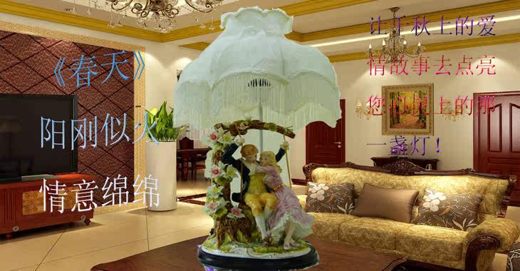 This is not just an ordinary desk lamp is a high-end crafts ! European classic style "spring " is the Court 's masterpiece. Girl hugged the boy 's neck ? goes pretty face attached to the boy's chest ? innocent girl ? and a look of tender love . . . The boy grasping the rope swing ? looking down at lovers ? infinite love . . . They sat on the swing? swing flicker? heart children swing? feelingly . . . Book paintings ? there are many boys and girls falling in love scenes and plot? but sat on the swing screen chirp oh ? really rare ...