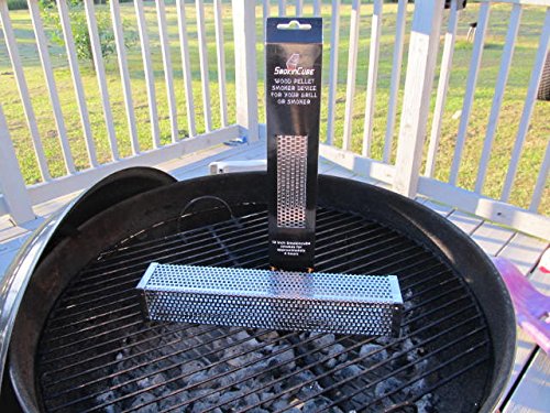 SmokinCube, The Original Patent Pending Pellet Smoker Cube (12 Inch ) - Stainless Steel Perforated Wood Pellet Smoker - Puts Smoke Flavoring in all Grilled Meats |Add Smoke Flavor-FAST! No Roll Design