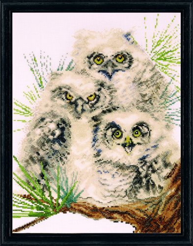 Counted Cross Stitch, Owl Trio, 11 by 14 inches