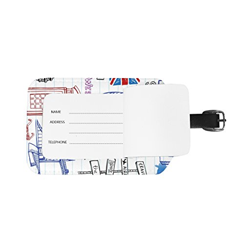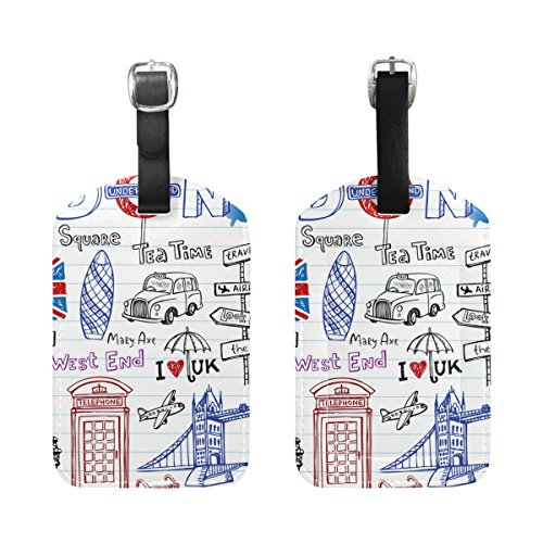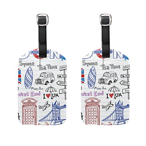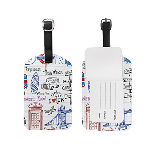 LORVIES London Doodles Luggage Tags Travel Labels Tag Name Card Holder for Baggage Suitcase Bag...