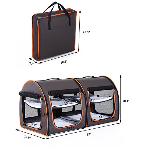 Specifications: ? Material: Oxford Polyester net, EVA, Steel ? Color: Grey ? Overall Dimension: 39.0"L¡A19.9"W¡A20.1"H ? Single Pet Carrier Size: 19.5"L¡A19.9"W¡A20.1"H ? Front Door Size: 13.8"L¡A11.0"H ? Side Door Size: 13.8"L¡A12.6"H ? Folding Size: 20.9"L¡A20.9"W¡A4.7" ? 2 Baseboard Size: 22.8"L¡A18.5"W¡A0.8"H ? Hammock Size: 15.4"L¡A17.7"W¡A1.2"H ? Net Weight: 10.1lbs