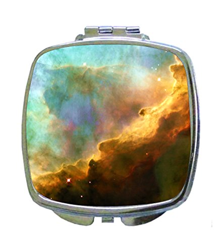 Silvertone metal compact square mirror. Measures 2.5" x 2.5" x .3". There are two mirrors inside this great compact. Great to have in your travel toiletry bags, to keep in your cosmetic cases both at home and on-the-go, and will fit neatly into your pocket. A perfect necessity for daily convenience