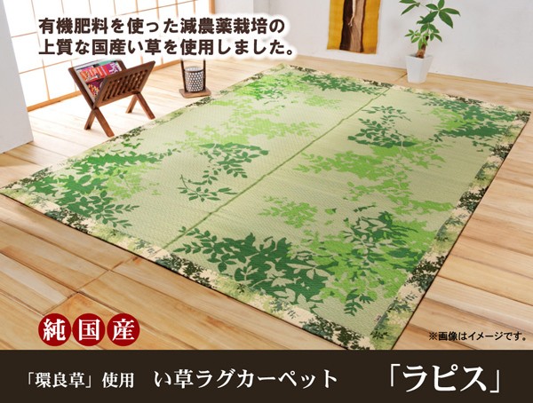 【商品名】純国産/日本製 袋織 減農薬い草カーペット い草マット 『ラピス環良草』 グリーン 江戸間4.5畳 約261×261cm 抗菌・防臭効果