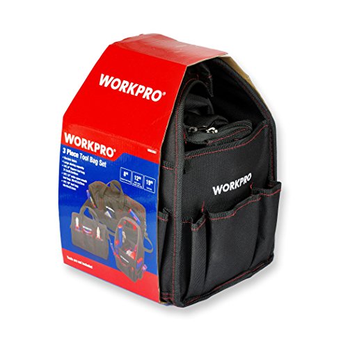 WORKPRO W003501A 8" Square Tool Bag, 12" Tool Bag & 19" Tool Bag Combo Set, 3-Piece