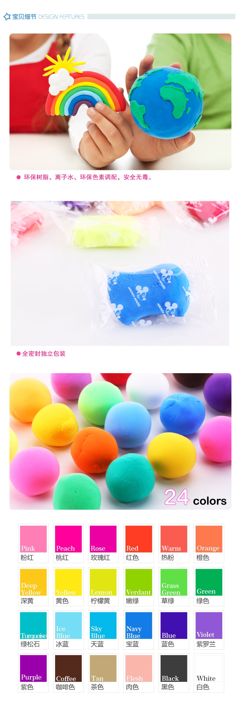 彩泥套装粘土24色无毒 儿童3D彩泥橡皮泥手工DIY益智玩具