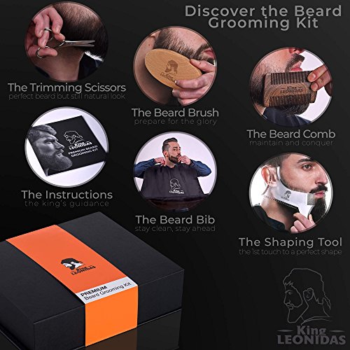 - 🎁 A PERFECT GIFT FOR MEN! If you are looking for an amazing gift that has that "innovative and premium" WOW factor, then you will love our 5-Piece Beard Care Kit. The SLEEK handmade design & colors are going to EXCITE even the pickiest friend, father or husband. It's the only kit that includes: BOAR HAIR beard brush, SANDALWOOD mustache/beard comb, BARBER trimming scissors, WIDE beard bib & Shaping Tool. We are the ALL-IN-ONE SHOP for all avid beard growers. - BE KIND & RECEIVE LOVE!