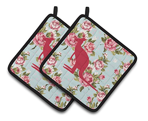 Caroline's Treasures Kangaroo Shabby Chic Blue Roses Pair of Pot Holders BB1008-RS-BU-PTHD, 7.5HX7.5W, Multicolor