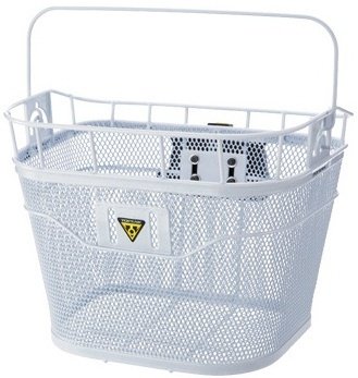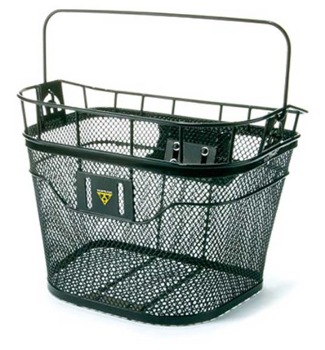 Studio : Topeak Publisher : Topeak Binding : Misc. Product Description Front basket has coated heavy-gauge welded wire construction.Attaches to handlebar with quickclick mountHandlebar clamp has extra space for computer, light or cell phone bagCarrying handle for off-bike convenienceDimensions: 13.8" x 9.8" x 10.2" 0