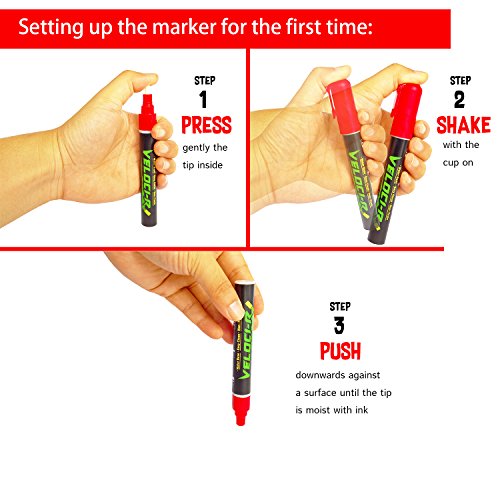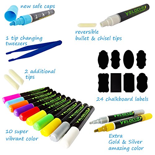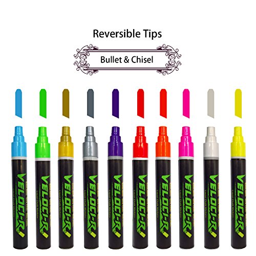 Your search for the PERFECT Liquid Chalk Markers is OVER! Here's you will find Veloci-R LIQUID CHALK MARKERS are high quality, fun, versatile, and easy to use! these markers can be used for a variety of fun and exciting activities. Express yourself and be creative! Make homework fun and create impressive projects for school. These markers will add a splash of color to decorations for holidays and special occasions, and are perfect for vibrant, decorative displays for your home, business, or elsewhere!