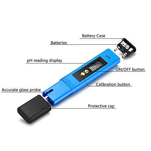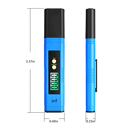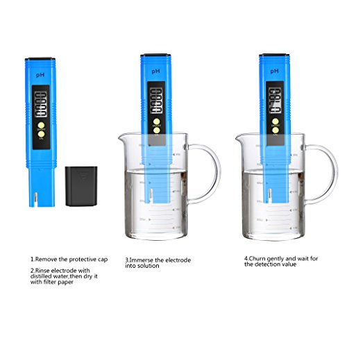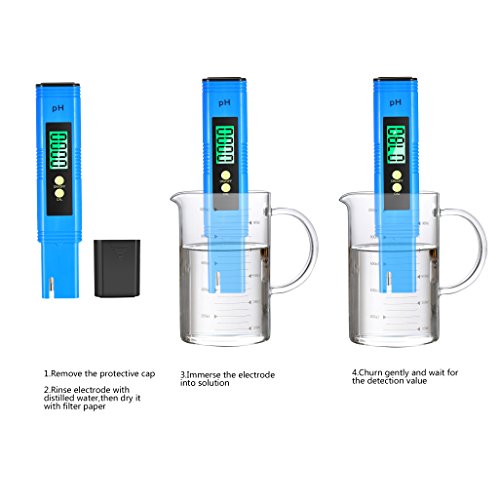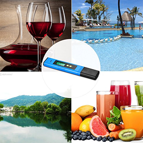 -. Feature : WIDE USE : Ideal for household or laboratory use; Suitable for testing pH balance of drinking water, pool, aquarium, RO system, Spa, or hydroponics; Appropriate for wide range of applications / PREMIUM COMPLETE KIT : Our digital pH test kit includes 6x PH buffer powders, features an AUTO CALIBRATION button, has a pH measuring range of 0.00-14.00, enables you to calibrate this unit in complete frustration free mode. / Fast and Accurate Results: Compared with color charts or messy test strips, our PH meter only takes a few seconds for your result to appear on screen and will get you the more high precision you need to have. Resolution: 0. 01 pH, accuracy: ±0.05 pH / Clear Backlit LCD Display: The new backlit LCD display makes reading more convenient! Simply immerse the electrode into solution, readings are quickly displayed on a large green backlit LCD screen, greatly improving night visibility. / Extremely Portable: Pocket size pen-style design lets you conveniently carry it with you wherever you go. Its special protective plastic case will protect it whether you take it to the pool, on a trip, to the beach, camping or a picnic
