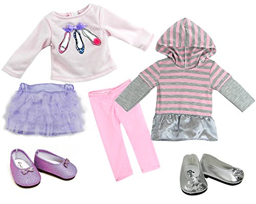 - Light Pink Long Sleeve Tee with Graphic Shoe Design and Lavender Tulle Skirt