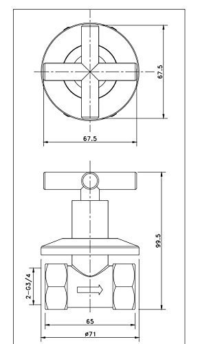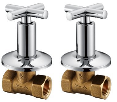 Royal H&H Concealed Shut Off Valve Straight with Modern Cross Handle Water Shower Home Plumbing Commercial 3/4-Inch IPS G3/4 One Pair