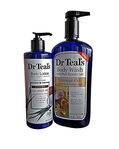 Dr Teal's Coconut Oil Body Wash Hydrates and conditions skin. Aloe Vera, Shea Butter and Vitamin E nourish and moisturize, while Pure Epsom Salt helps revitalize tired, achy muscles.