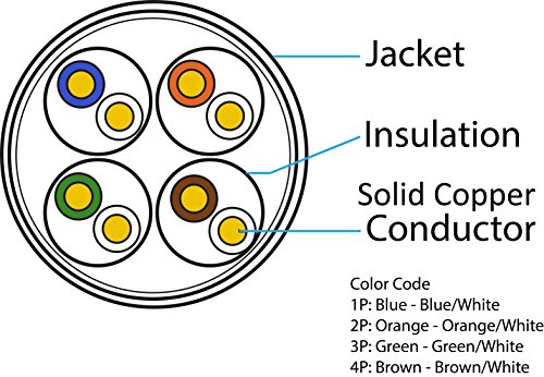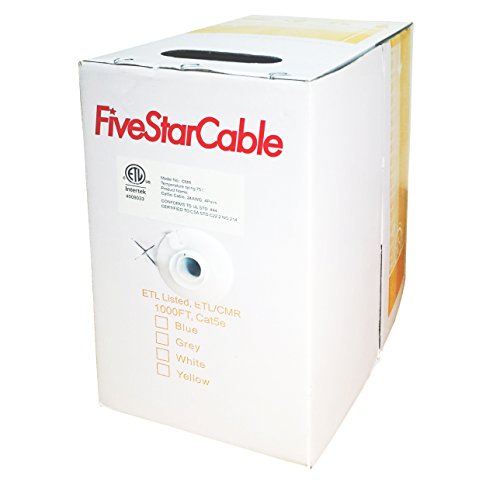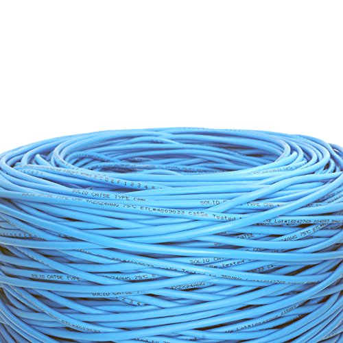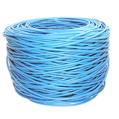 Five Star Cable Cat5e 1000 Ft CMR Rated 24AWG Solid Bare Copper Conductor UTP ETL Listed PVC Network Ethernet Cable - Blue color