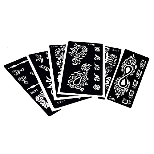 -. Title : 6 Pieces Indian Henna Tattoo Stencil Hollow Black Drawing Women Body Art Template Classic
