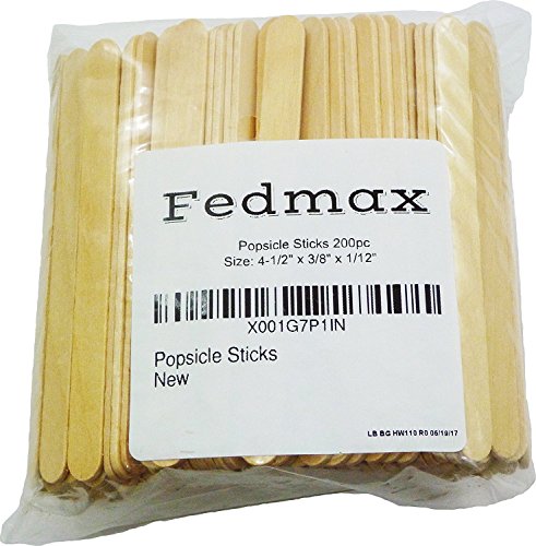 Popsicle Sticks, 200pc, 4-1/2" Length, FDA Approved Food Grade Wooden Ice Cream Sticks, Great Sticks for Crafts, By Fedmax.