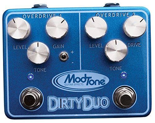 Studio : ModTone Guitar Effects Publisher : ModTone Guitar Effects Binding : Electronics Product Description The MT-DUO ModTone Dirty Duo Overdrive is the Mack Daddy of overdrives and demonstrates why two pedals are better than one. Most guitarist's overdrive and distortion needs can change radically from song to song . The Dirty Duo offers two distinct overdrive pallets that that can be combined to boost the signal of the other. Imagine this; Overdrive 2 is set for your favorite classic rock or metal tone, sweet.., now your next song is a blues number which requires significantly less gain but still needs some sustain , grit and a little punch, Sweeter…, when you reach the lead break you slam on overdrive 1 and combine both drives for a lead boost ! Or Visa versa! It's like have 3 pedals in one! Overdrive 1 has volume, tone and drive controls as well as a Hi/low cut filter for ultimate range control. Overdrive 1 has volume, tone and drive controls. The Dirty Duo features a rugged steel housing, durable aircraft style switches featuring silent true bypass circuitry and metal input jacks, make for a heavy duty, reliable piece of guitar playing equipment! Can be powered by a 9 volt battery or get the Mod Tone MT-APS Power supply to plug in and not worry about batteries! Backed by a 5 year written warranty. 0