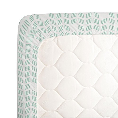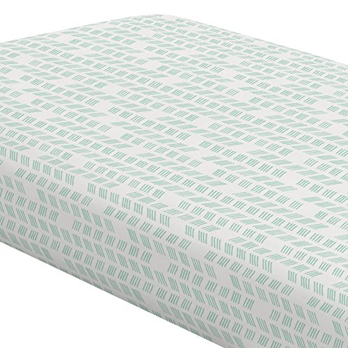 -. Binding : Baby Product -. Brand : Carousel Designs -. Color : Green -. Feature : ORGANIC 100% COTTON, SUPER SOFT - Carousel Designs crib sheets are made with 100% certified organic cotton fibers, which are P.R.Inted in the USA with certified organic inks. Both the cotton and the inks are third party GOTS (Global Organic Textile Standard) certified. Each crib sheet is a woven 200 thread count fabric that is perfect for your baby girl or baby boy. / MADE IN THE USA - Carousel Designs makes all of its products right here in the USA. This guarantees the products you use for your precious baby are of the highest quality and because we ship directly to you it is at a P.R.Ice that can't be beat. You will not find another crib sheet of this quality and P.R.Ice made in the USA! / FITS STANDARD CRIB MATTRESSES PERFECTLY - Every sheet is expertly sewn with deep pockets and elastic all the way around to hug your baby's mattress securely. Our fitted crib sheets are made for standard crib and toddler bed mattresses measuring 28" x 52". With thousands of customers since 1988 you can count on this being the best crib sheet you'll own! / MACHINE WASHABLE AND VERY DURABLE - We have been making crib sheets for almost 30 years and we know how many washes they go through! Our sheets are guaranteed to last through multiple washes while maintaining their luxurious feel. Make sure to wash your crib sheet before use to ensure the best fit and softness for baby. / PERFECT GIFT FOR BABY - Moms love Carousel Designs products and especially our fitted crib sheets. Whether you're giving a gift from a baby registry or looking for something to give at a baby shower, Carousel Designs makes the highest quality baby bedding and nursery decor all here in the USA. Specifically, our personalized and custom crib sheets have been known to be the hit of many baby showers. -. Label : Carousel Designs -. Manufacturer : Carousel Designs -. MPN : MTTH-C-SHT-FT -. NumberOfItems : 1 -. PartNumber : MTTH-C-SHT-FT -. ProductGroup : Baby Product -. ProductTypeName : BABY_PRODUCT -. Publisher : Carousel Designs -. Studio : Carousel Designs -. Title : Carousel Designs Mint Tribal Herringbone Crib Sheet - Organic 100% Cotton Fitted Crib Sheet - Made in the USA