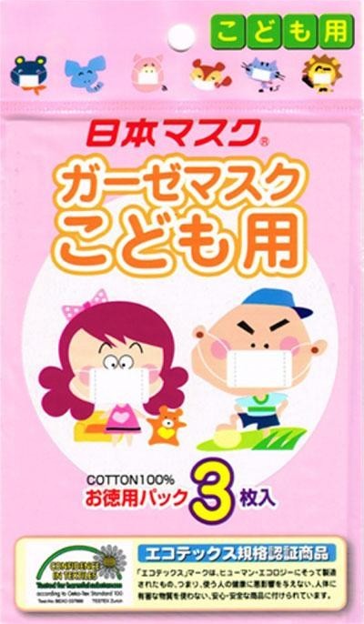 | 綿100%で着け心地の良いこども用ガーゼマスク。 |