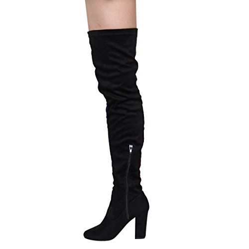Binding : Apparel Product Description Step out in style with this over the knee high boots to be a fashion focus. Featuring soft faux suede upper, almond toeshape,exquisite stitching accent, wrapped block heels. Finished with durable outsole and inside zipper closure for easy on and off wear 0