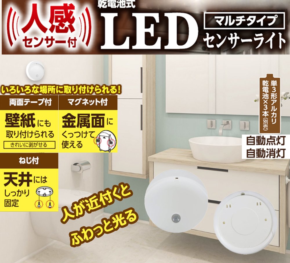 Since it is a dry cell type and no power supply or wiring is necessary, it can be easily installed in various places.