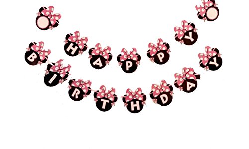 -. Title : Kids Birthday Party Decoration For Girls,Minnie Mouse Inspired Happy Birthday Banner Pink by Alemon