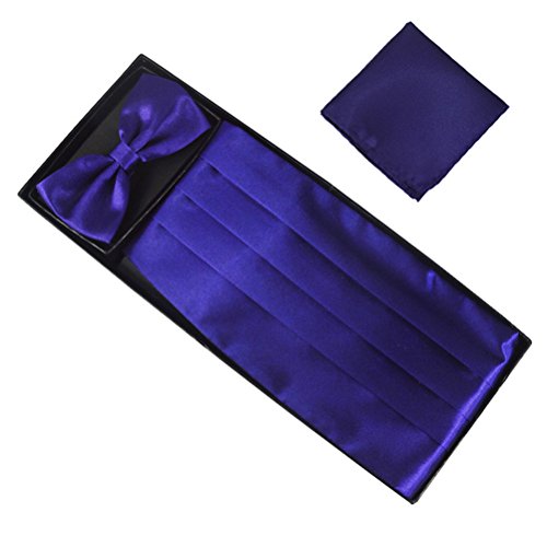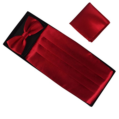 Package Including 1 * Men Bow Tie Cummerbund Silk Pocket Square Handkerchief Set Adjustable