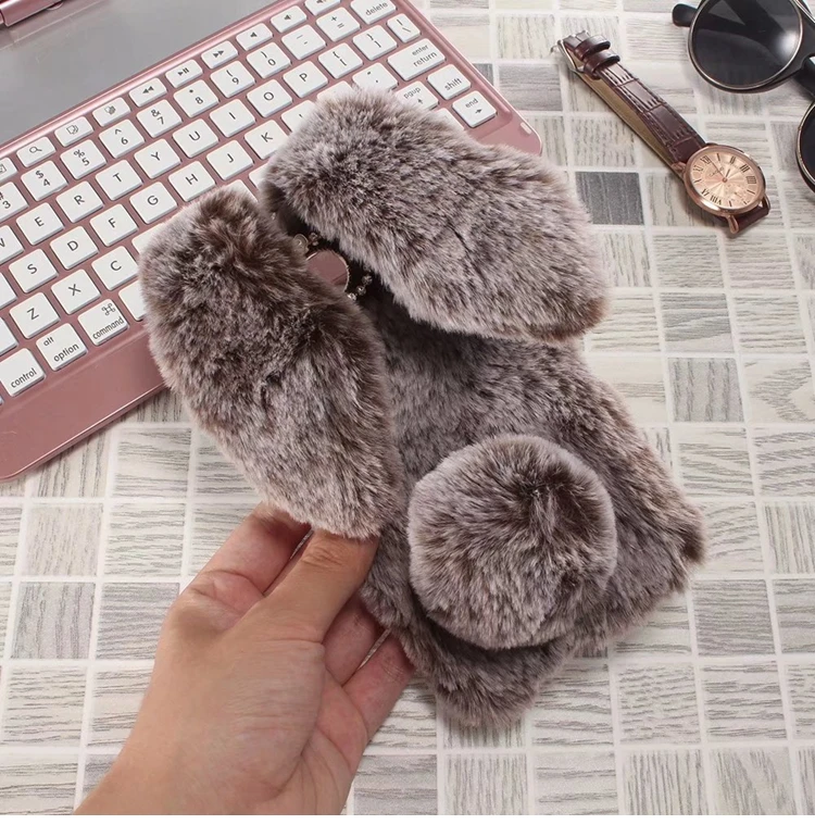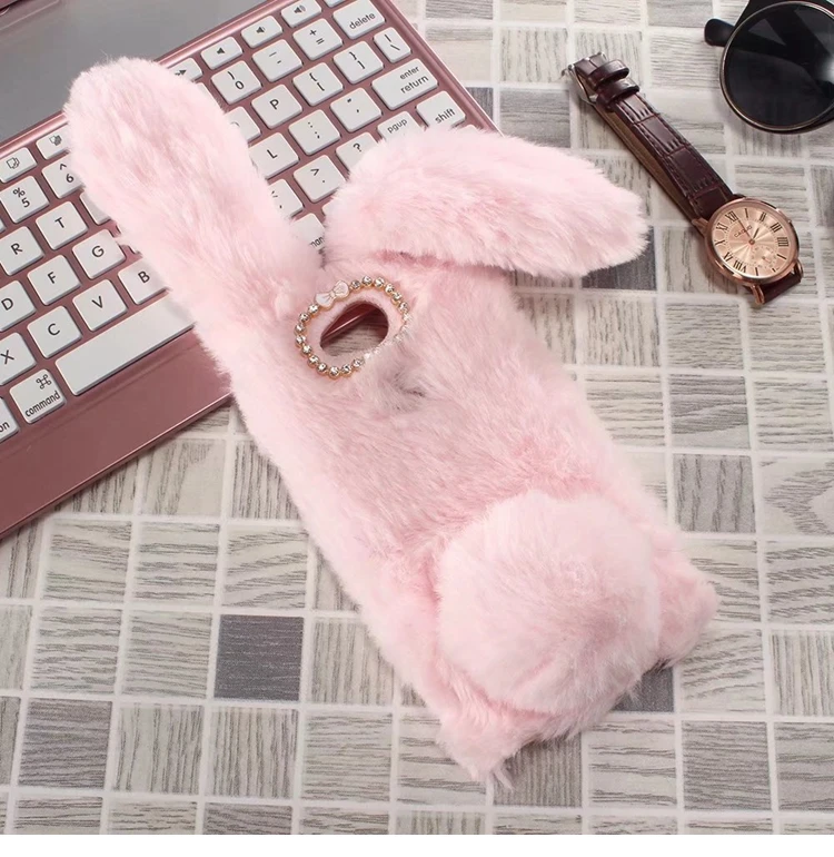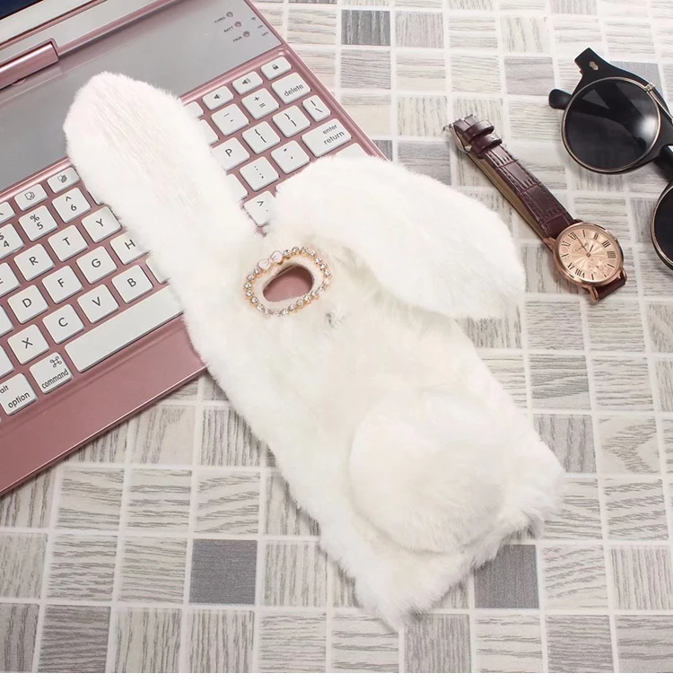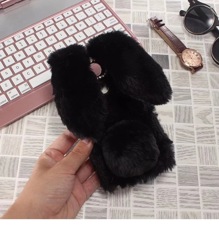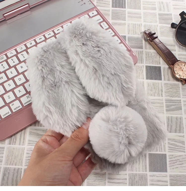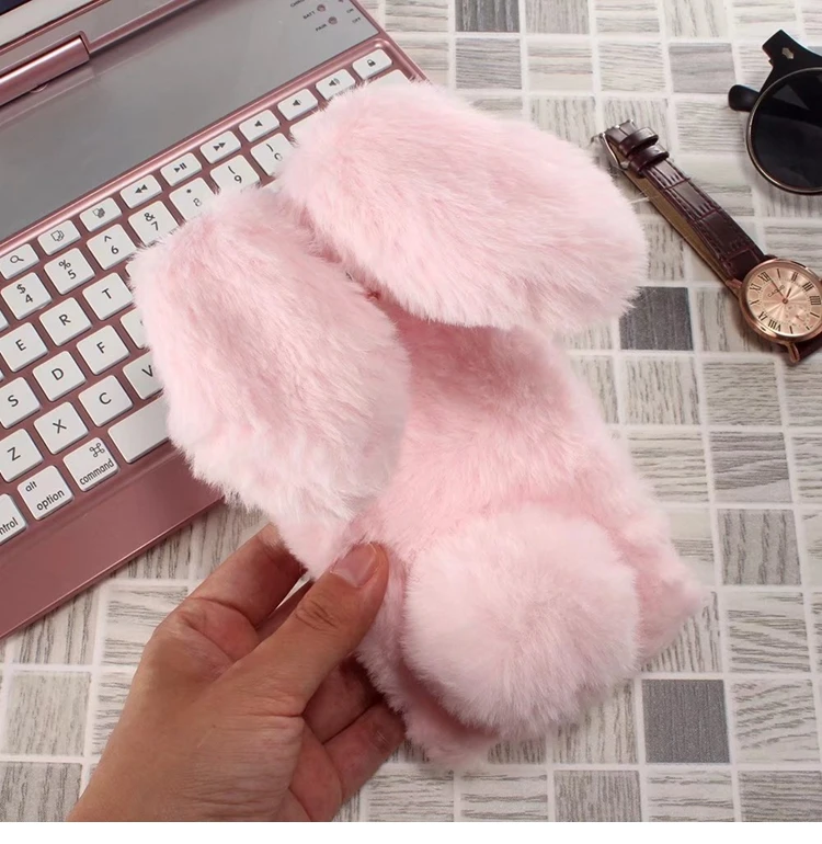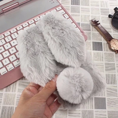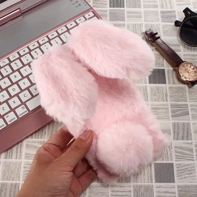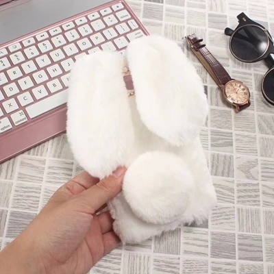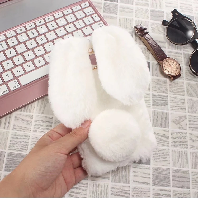 Features:Cartoon Warm Plush Fluffy Pet Rabbit Long Ears Phone Case