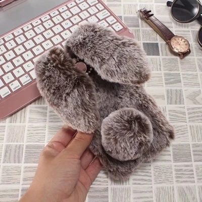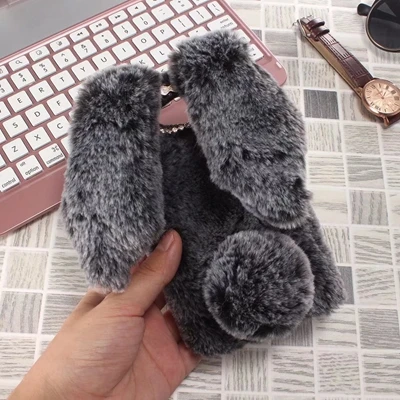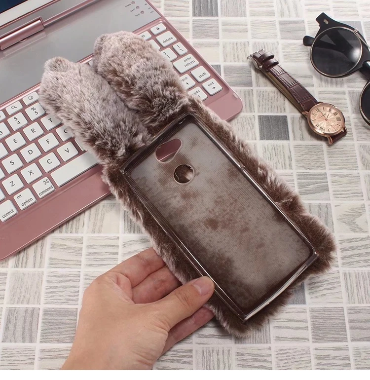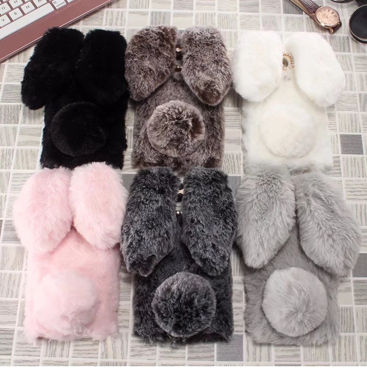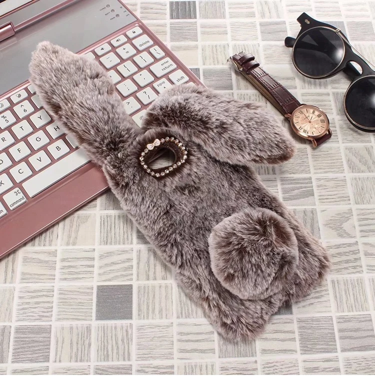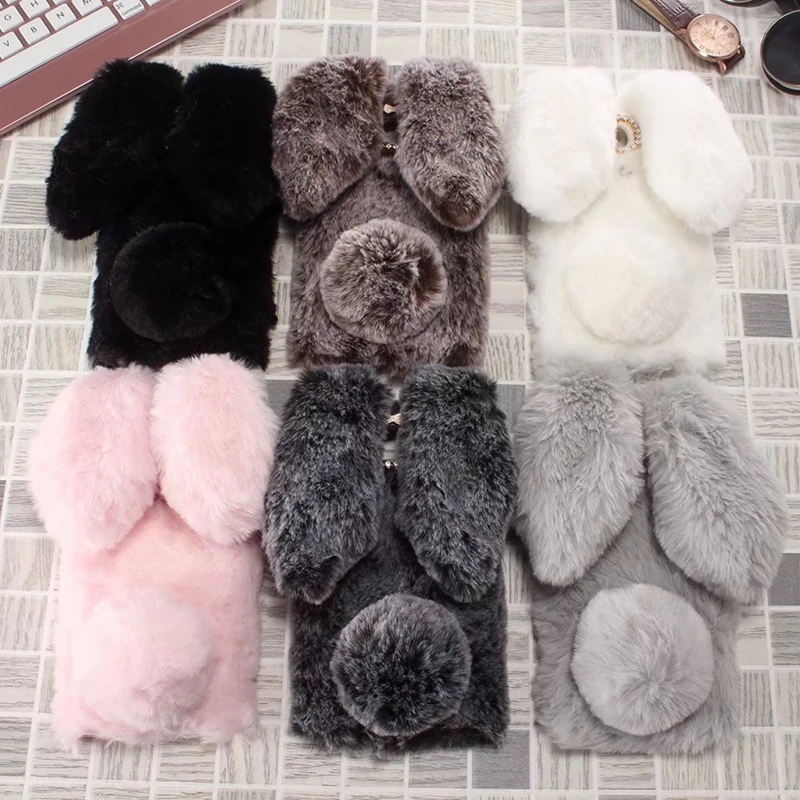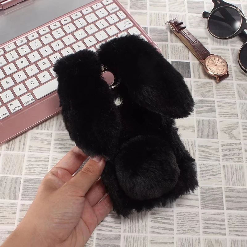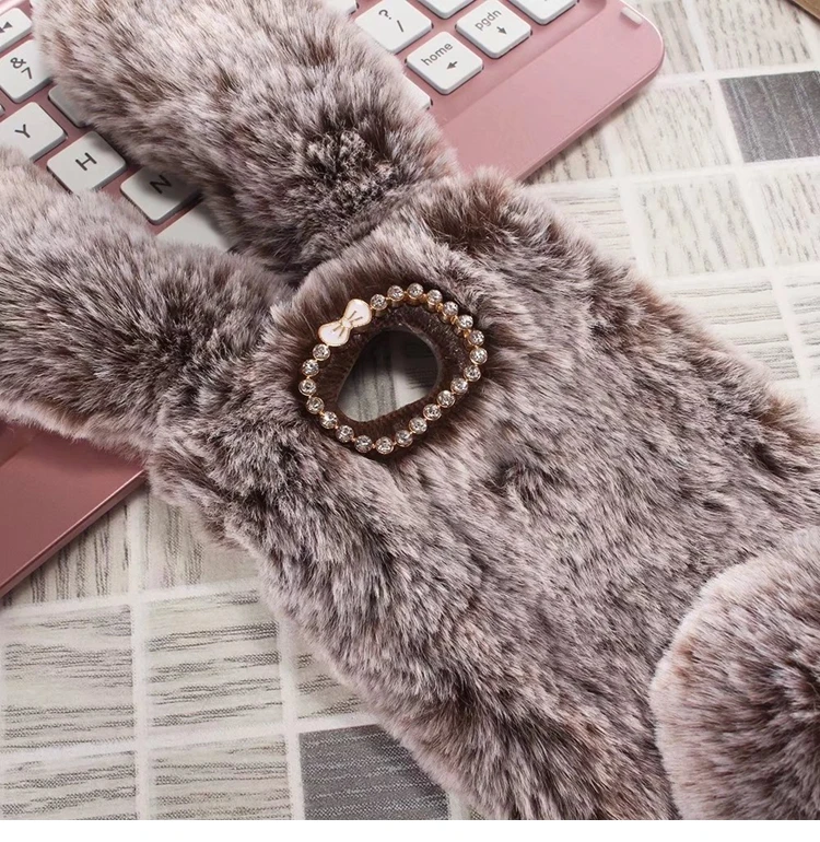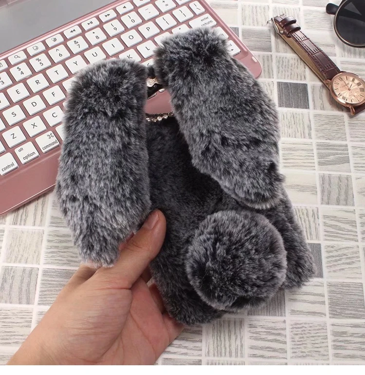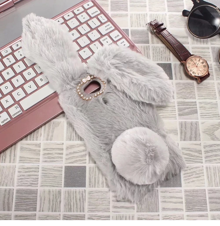 Features:Cartoon Warm Plush Fluffy Pet Rabbit Long Ears Phone Case