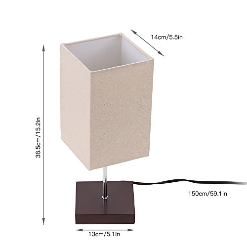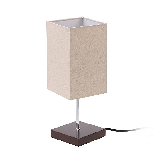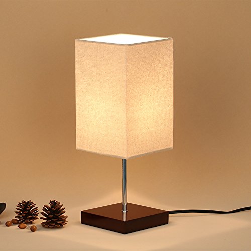 Tomshine Bedside Table Lamp Small Nightstand Lamps for Bedrooms Minimalist Solid Wood Desk Light with Square Fabric Shade for Living Room Coffee Dresser Table