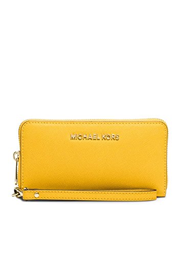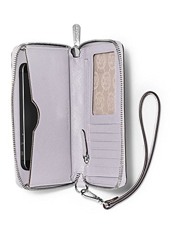 Rendered in Saffiano leather with gold-tone hardware, this sleek case is the perfect all-in-one accessory. It features a dedicated pocket for your phone and a wealth of card slots for easy organization. A must-have when traveling, tuck it into your everyday carryall for effortless elegance. This practical case holds an iPhone® 5 or iPhone® 6 for convenience. 8.5-in. W x 4.5-in. H x 1-in. D Zip closure Interior: 1 bill compartment, 1 zip pocket, 5 credit card slots, 1 ID window Wristlet strap with 6-in. drop Gold-tone hardware; self-color stitch trim Saffiano leatherFeature