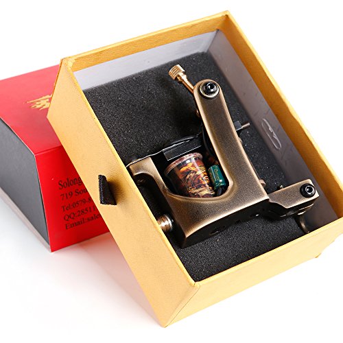 Solong Tattoo Custom Brass Tattoo Machine Gun Handmade 12 Wrap Pure Copper Coils for Liner M203-1
