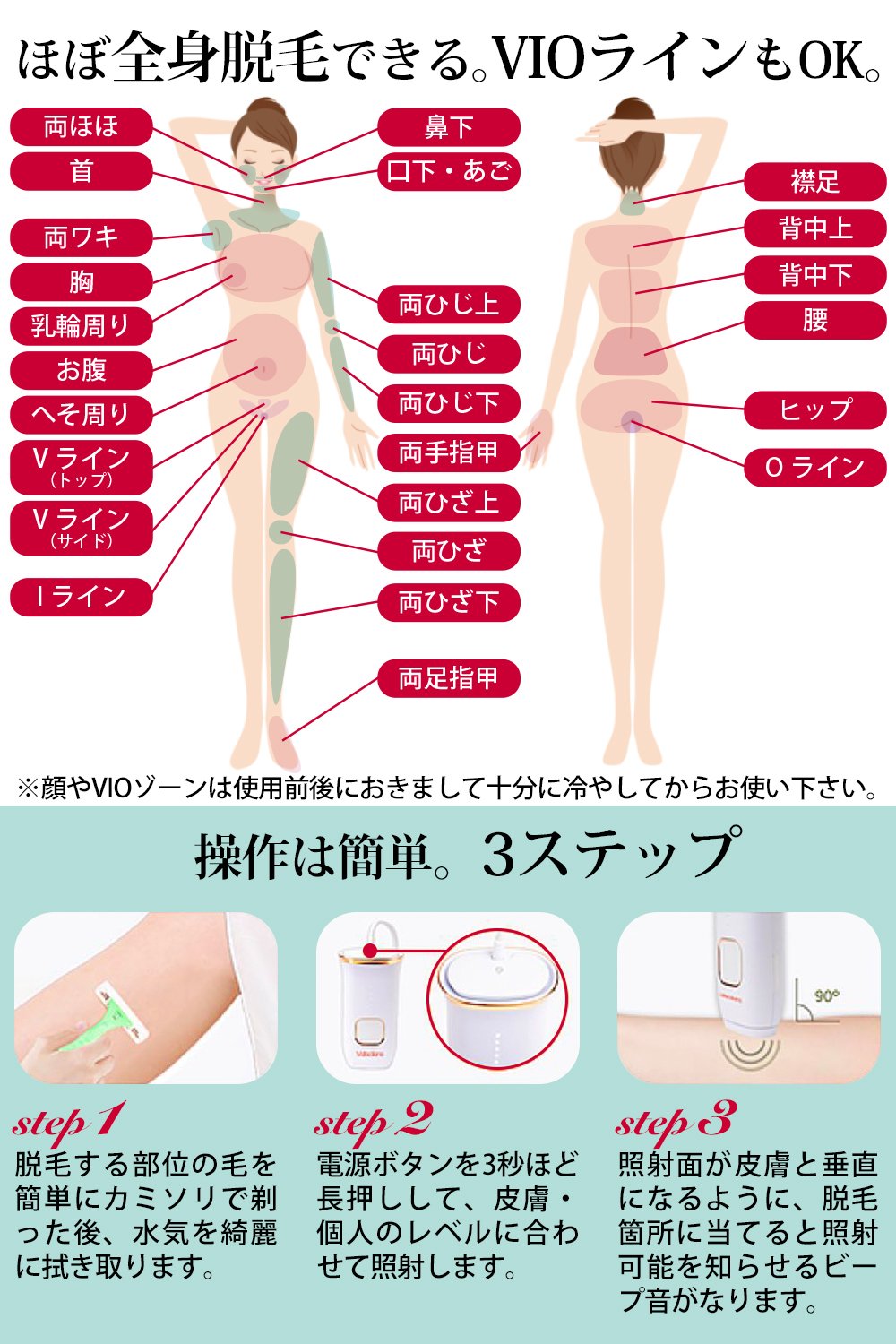 Because pain is also small, it is suitable for depilation of face and VIO.